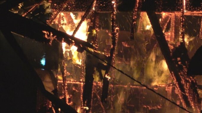 火はおよそ15時間間後の12日午前8時過ぎに消し止められ、木造2階建ての住宅1棟が全焼し隣接する建物の外壁を焼きました。