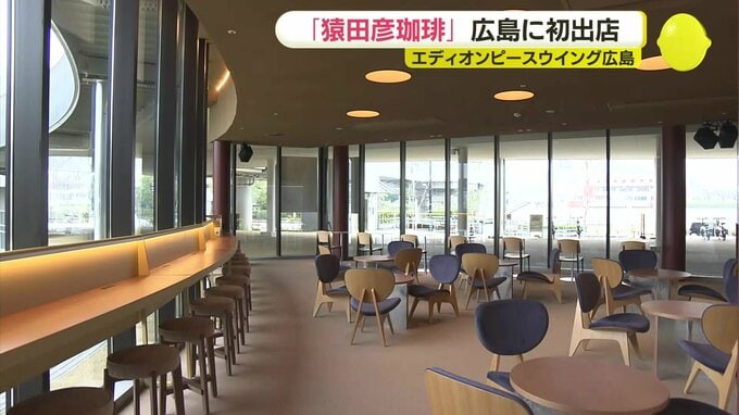 ピースウイングの1階にオープンする「猿田彦珈琲」です。最高品質のスペシャルティコーヒーを取り扱う専門店で、東京都内を中心に24店舗を展開していて、広島では初出店です。店内は、53席あり、スタジアムのグラウンドや広場の土を連想させるデザインになっています。