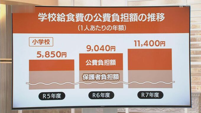 長崎市によりますと、学校給食費の一人当たりの年額は食材価格の高騰によりここ数年上がり続けています。令和5年度:5850円→令和7年度:1万1400円。(「画像」参照)このうち保護者負担額は据え置きが続いていて、公費負担だけが大きくなっている形です。