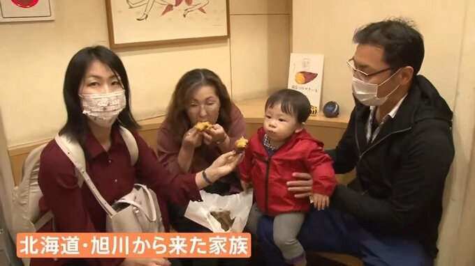 北海道・旭川から来た家族。東京に遊びに来たときはこの店で焼き芋を食べるのが楽しみのひとつだそうです。