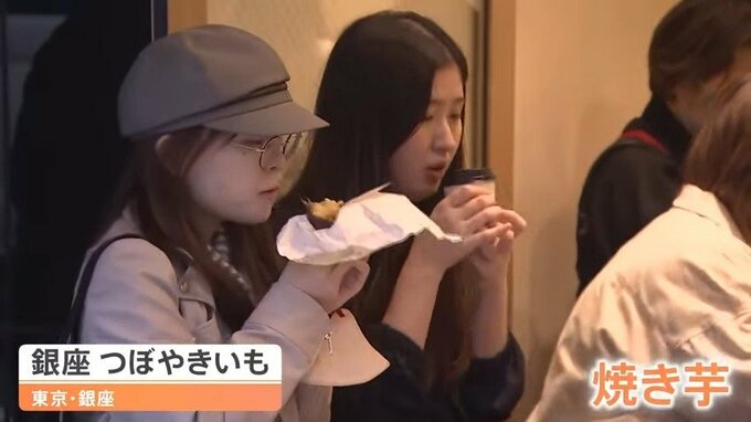 6日、今季最低気温を観測した東京。銀座 つぼやきいもでは次々に売れている「焼き芋」がありました。