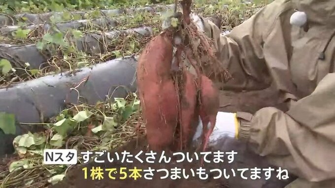 「すごいたくさん(芋が)ついています。1株で5本、さつまいもがついています」