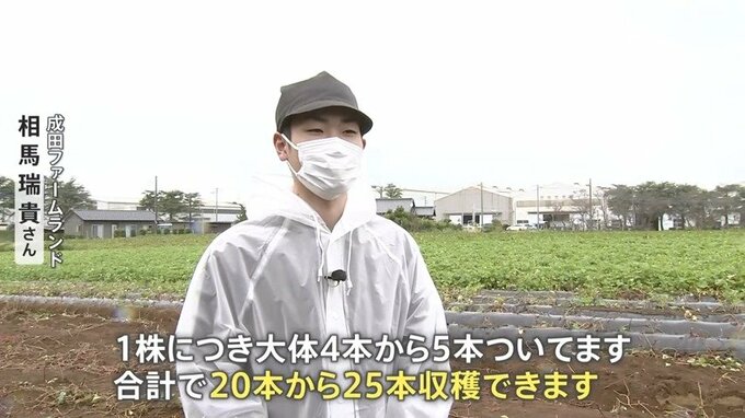 「1株につき大体4本から5本ついています。合計で20本から25本収穫できます」