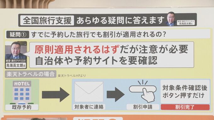 Nスタが調べたところ、楽天トラベルやじゃらんなど、既存の予約も原則適用可能としていました。