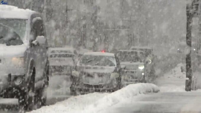 岩手県内は急速に発達する低気圧の影響で荒れた天気となっていて、沿岸には暴風雪警報が発表されています。このあとも雪を伴った強い風に警戒が必要です。13日午前9時ごろの盛岡市内の映像です。断続的に降る大粒…