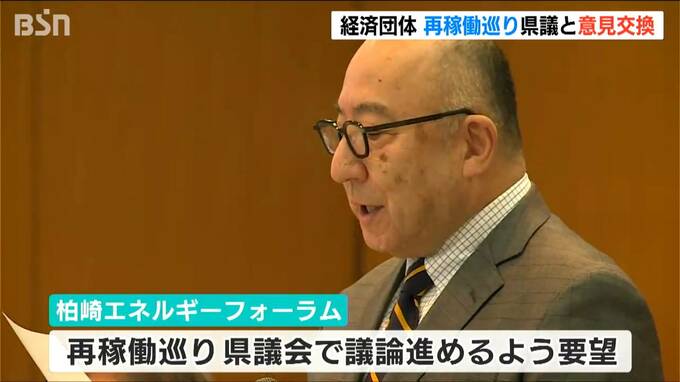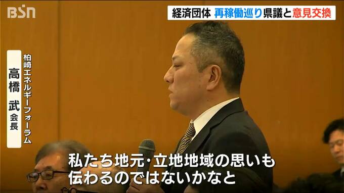 再稼働をめぐり“地元の同意”が焦点となる中、経済団体は県議会で再稼働の議論を進めるよう求めたということです。