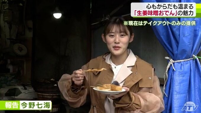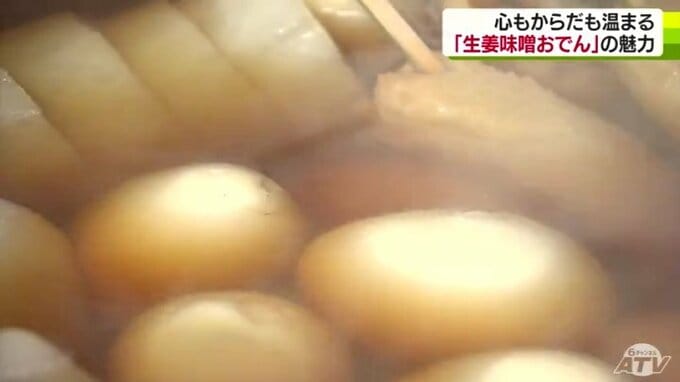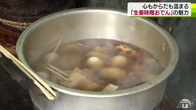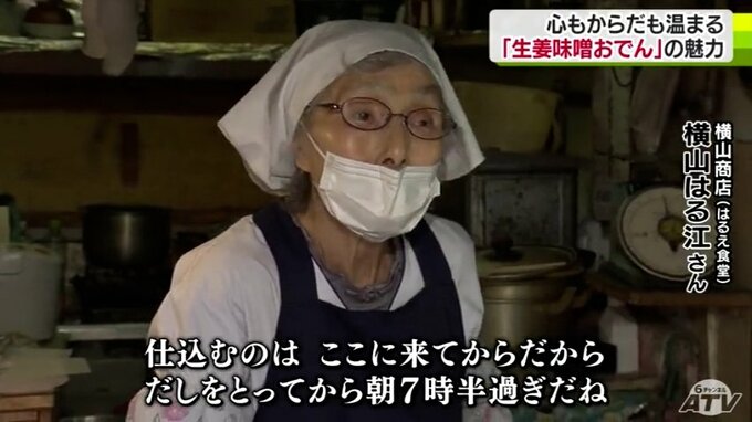 88歳の横山はる江さんが55年間1人で切り盛りしていて、名物として親しまれているのが「生姜味噌おでん」です。