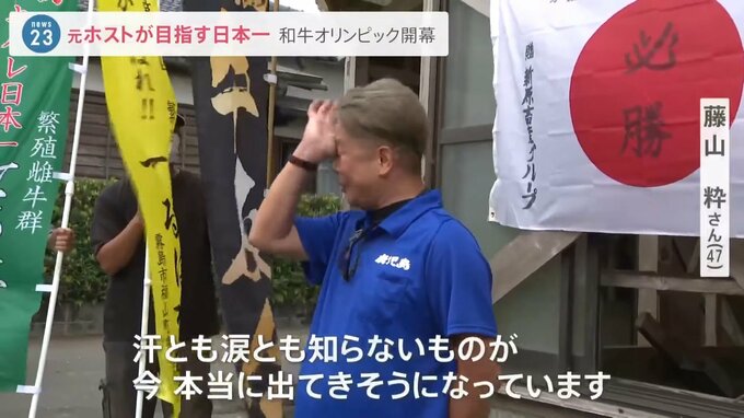 鹿児島県霧島市で、40頭の牛を育てている藤山粋さんです。全国出場が決まった8月の鹿児島県最終予選では、喜びを爆発させていました。