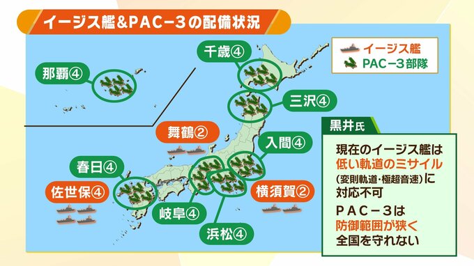 ーーイージス艦は佐世保(長崎県)、舞鶴(京都府)、横須賀(神奈川県)の3地点で8隻配備されています。PAC3に関しては部隊が全国に28あるということです。