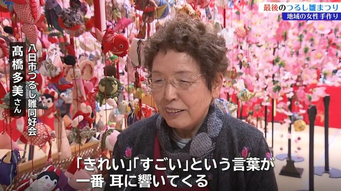 つるし雛を作る地域の女性グループ「八日市つるし雛同好会」は、メンバーの多くが70代を迎え、集まって作品を作り続けることや展示の準備をすることが難しくなったため、今回での終了を決めました。