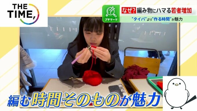 しかし、今どきの若者といえば何かとタイパを重視しがち。手間も時間もかかる編み物は真逆な気もしますが、ハマる理由として出てきたのが「無心」という言葉。
