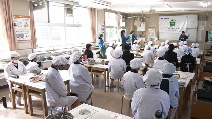 「食」を通じて子どもたちに環境を守ることの大切さを伝えようと、岡山市の企業が市内の小学校で出前授業を行いました。