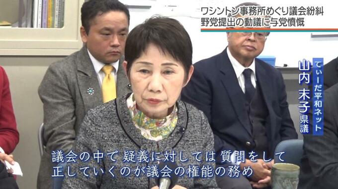 ワシントン事務所の予算を予備費に回し必要に応じて計上するよう、県執行部に修正を求めています。