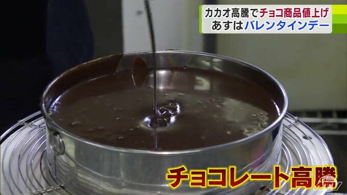 「カカオ豆」歴史的な高値で「バレンタイン」に影響 「正直つらいです…」経営の厳しさ増す洋菓子店からは“悲鳴” 先物取引価格は2年前の「約4倍」に上昇のカカオ豆 それでも変わらない商品にかける『想い』 青森テレビ 2025年2月14日(金) 06:15 国内 カカオ豆が歴史的な高値になったことをうけ、洋菓子店の経営は厳しさを増しています。 14日のバレンタインデーに向けて需要が高まる「チョコレート商品」を値上げする店もあります。