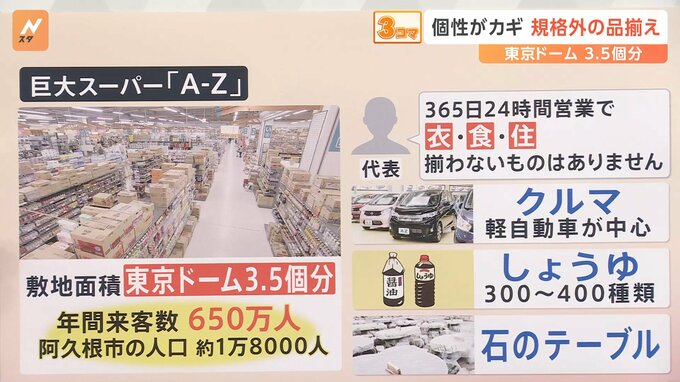 次は鹿児島県・阿久根市です。巨大スーパー「A-Z」規格外の品揃えに定評があります。