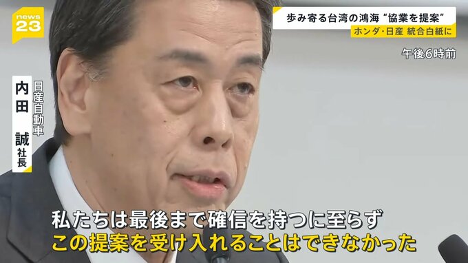 「(ホンダの)完全子会社となった場合、我々にとって自主性はどこまで守られるのか、日産が持つポテンシャルを最大限引き出すことができるのか、私たちは最後まで確信を持つに至らず、この提案を受け入れることができなかった」