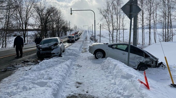 14日朝、北海道清水町で乗用車同士が正面衝突する事故があり、男性2人が病院に搬送され、このうち20代とみられる1人が意識不明の重体です。