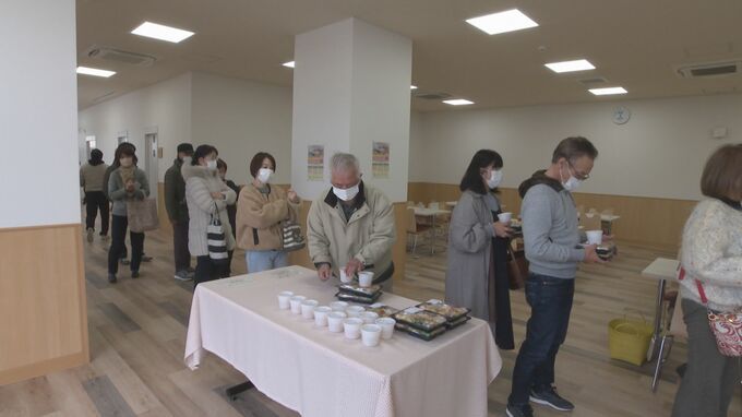 支援学校の校内で午前11時、一般の来客で長い列ができていました。お目当ては1食500円のワンコインで提供される「さくら弁当」です。