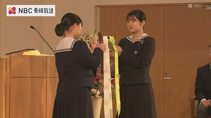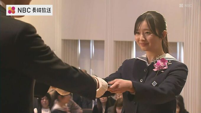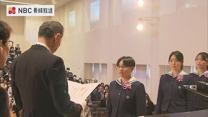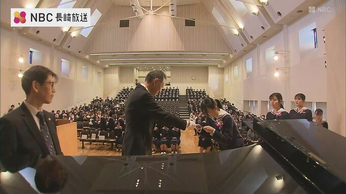 長崎市の活水高校で14日、長崎県内の高校では最も早く卒業式が行われました。