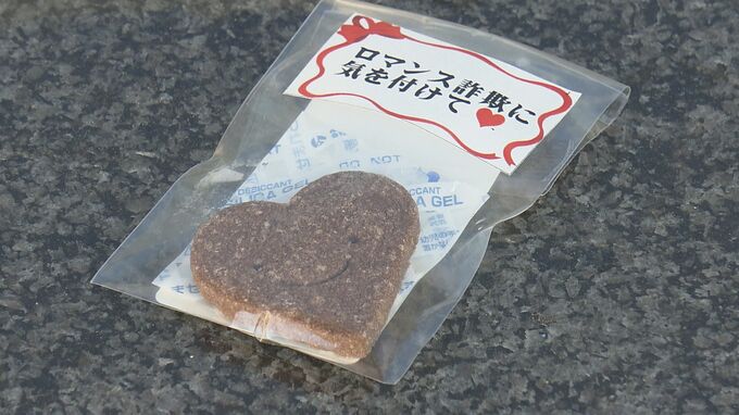 2月14日に特殊詐欺の被害防止を啓発するキャンペーンが広島市で行われ、バレンタインデーにちなんでチョコクッキーが配られました。藤原記者「広島銀行可部支店では、詐欺の被害防止を啓発するチラシと『ロマンス…