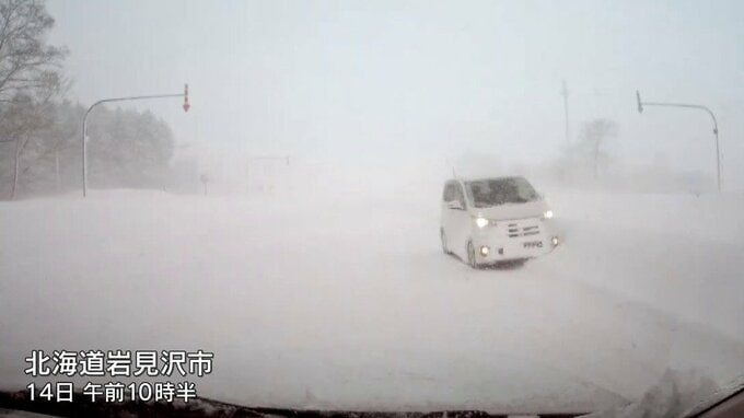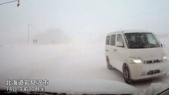 14日午前、吹雪で視界が悪くなっていた北海道岩見沢市の国道で、逆走してくる車2台をドライブレコーダーが捉えました。