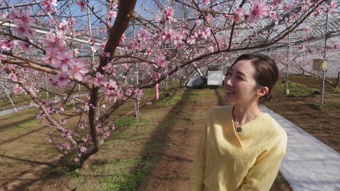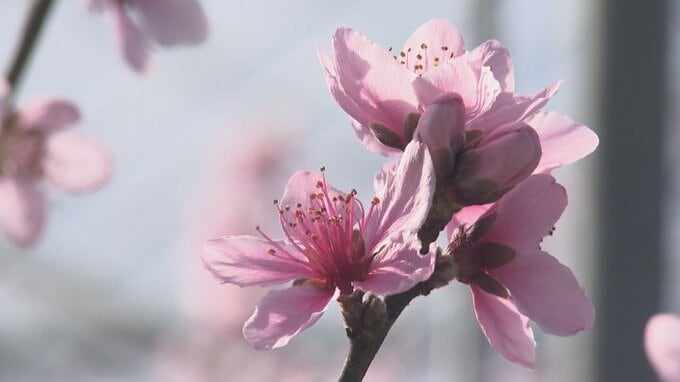 山梨県甲州市ではハウス栽培のモモの花がほぼ満開となりました。