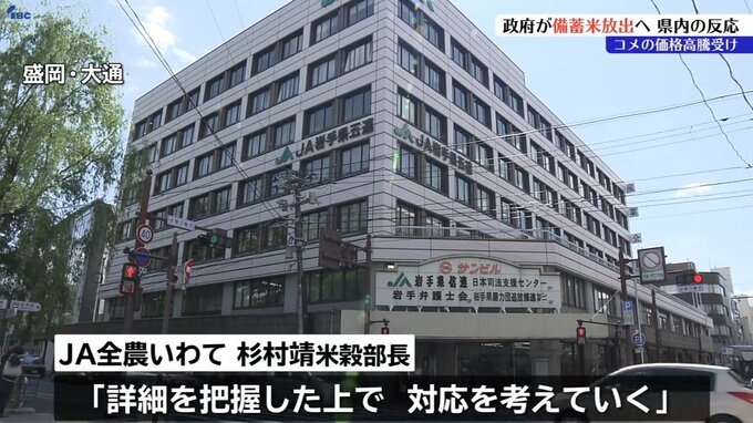 また、売り渡しの対象となるJA全農いわての杉村靖米穀部長は、「詳細を把握した上で対応を考えていく」と話していて、備蓄米の放出が値下げにつながるか動向を注視しています。