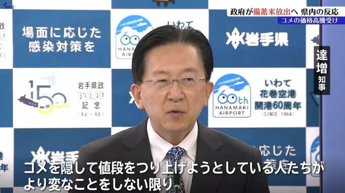一方、14日行われた定例会見で達増知事は、政府の備蓄米放出について次のように語りました。