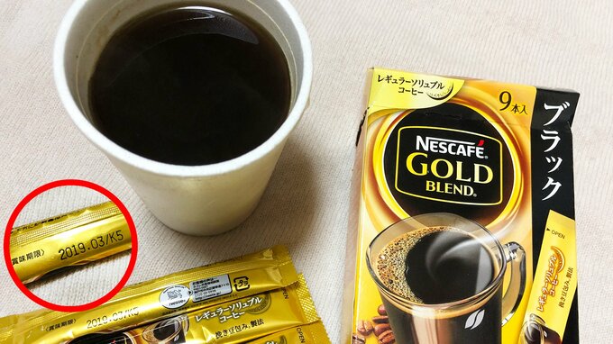 この日、一番古い商品は賞味期限がなんと3年前、2019年3月の粉末コーヒー「ネスカフェ・ゴールドブレンド」だった。手に取ると、正直不安がよぎる。