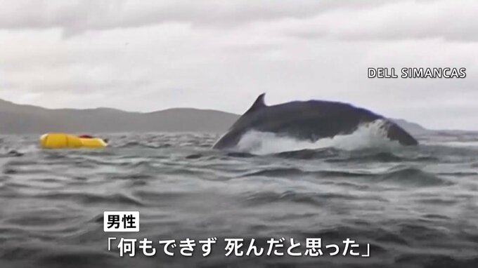 巨大なクジラがカヤックに乗っていた男性を丸のみにする衝撃映像です。南米チリの海上で男性が黄色いカヤックを漕ぎ進めています。ところが次の瞬間。海中から現れたクジラにカヤックごと丸のみにされ、瞬く間に姿…