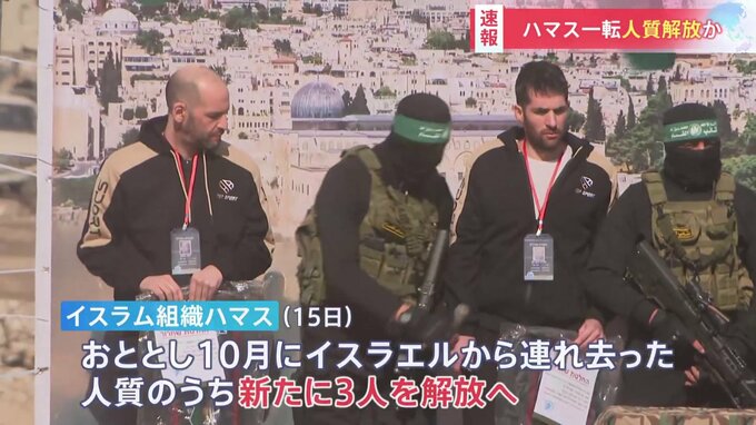 イスラム組織ハマスはパレスチナ自治区ガザでの停戦合意に基づき、新たに3人の人質が引き渡されたものとみられます。今回の解放についてはハマスが一時、延期を表明したことで、戦闘再開への懸念が高まっていまし…