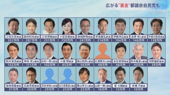 今回、裏金事件に関わったのは都議会自民党の都議ら26人。中抜き分は合わせて2873万円に上る。そのうち現職の都議は実に16人。