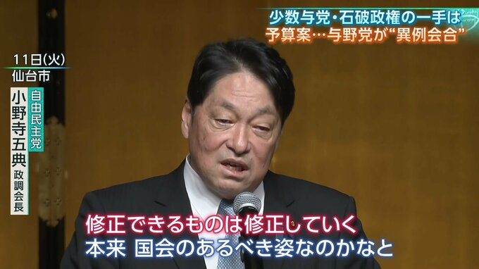 予算案作成の責任者・小野寺政調会長も、野党の要求に応じた“予算修正”に前向きな姿勢。