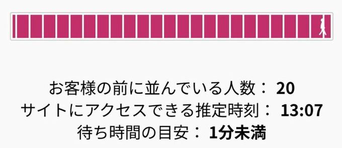 続く投稿できゃりーさんは、WEBでのチケット販売画面のキャプチャを投稿。「お客様の前に並んでいる人数:20」「サイトにアクセス出来る推定時刻:13:07」「待ち時間の目安:1分未満」という、【もうすぐだドキドキ】の状況。そして、テキストでは「MLBのチケット取れた…」と、うれし泣きと野球ボールの絵文字を添えて報告しました。