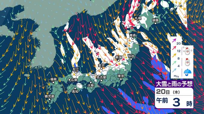 【強烈かつ長期】19日の上空は寒気 “すっぽり” 覆われ…またも “嵐の使者” マイナス39℃以下【大雪と雨と風のシミュレーション】17日夜から日本海側を中心に大雪へ…東北では猛吹雪も チューリップテレビ 2025年2月17日(月) 11:00 国内 天気 20日(木)の大雪と雨と風のシミュレーション