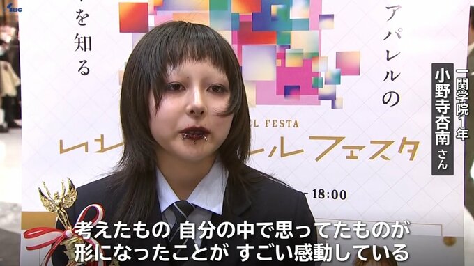 その後、表彰式が行われ最優秀賞は一関学院1年の小野寺杏南さんがデザインし多様性や心のトキメキを表現した「inside」が受賞しました。