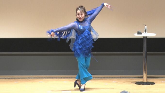 全身青色の衣装で登場したキンタロー。さんは「トビタテ!~」プロジェクトのロゴである青い鳥のモノマネで、会場を笑わせながら登場。自身の留学へのきっかけについて、“中学校時代に少し仲間外れみたいなことが起きて、性格が180度変わって、すごい明るかったんですけど、めちゃくちゃ暗黒期に入ってしまいました。「これはいかん」「どげんかせんとあかん」と。ちょっと中学を引きずりながら高校の夏休みに、ホームステイプログラムがあって「これかもしれない」って思って、初めてホームステイしたのがきっかけです”と、告白しました。