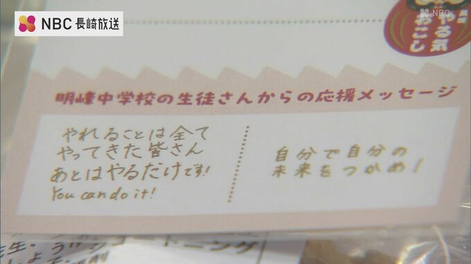 受験シーズンに頑張る人々を応援します。諫早市の中学生のアイデアから県内企業3社が協力して開発したお菓子が販売されています。