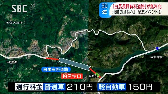 長野市と大町市や白馬村方面を結ぶ「白馬長野有料道路」が、16日から無料化されました。