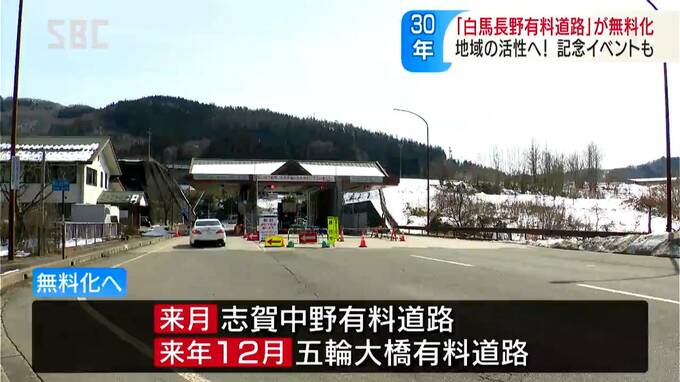 長野オリンピックの際に整備された道路では、「志賀中野有料道路」が3月16日の午前0時に、「五輪大橋有料道路」が2026年12月25日以降に無料化される予定です。