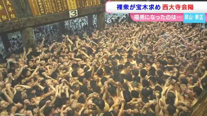 声援を受け、気持ちを高めます。果たして宝木は誰の手に・・・境内でははだか達が冷水で心身を清め続々と大床に集います。その上には立ち上る湯気。みな、大きな声で気持ちを昂らせます。その様子に会陽を初めて見る県外出身の記者は・・・