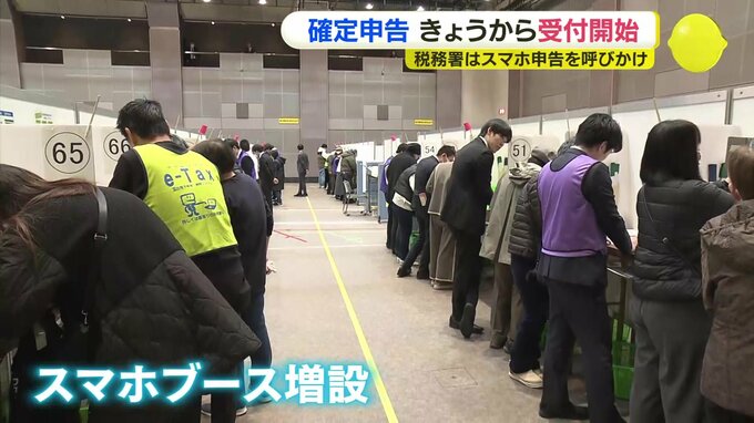 「スマートフォンを使った電子申告が定着してきたため、去年より、スマホコーナーのブースが増えているということです」