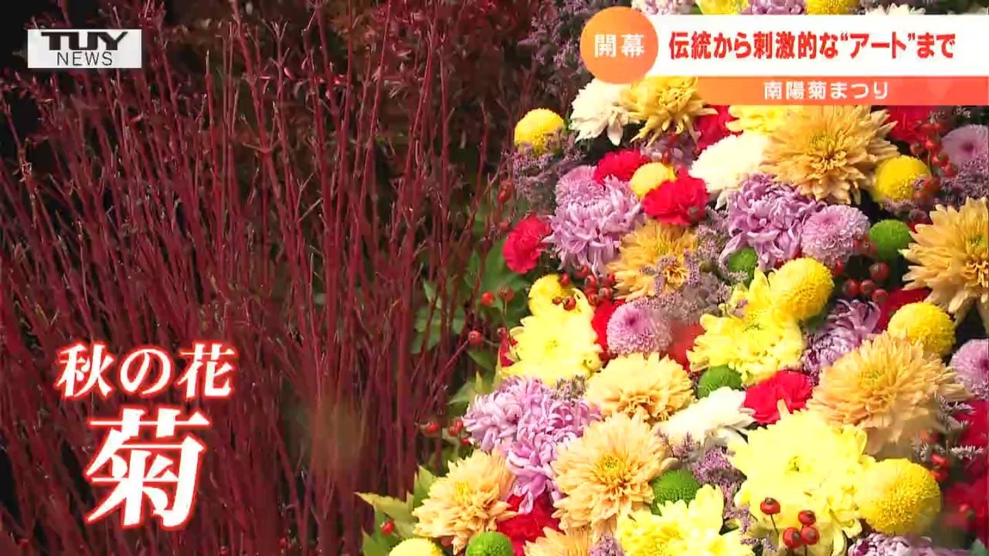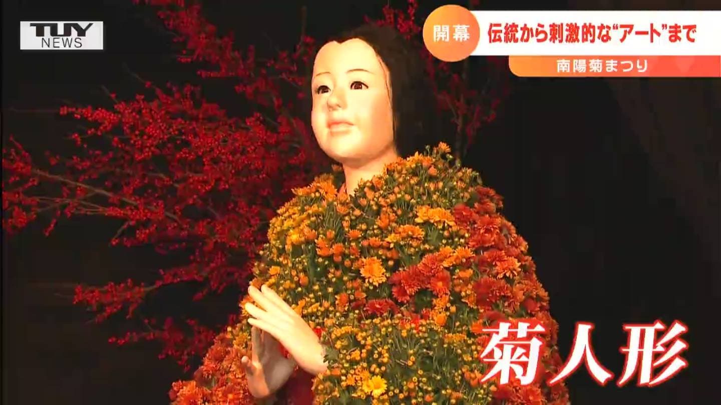南陽市ではきょう、100年以上の歴史がある、伝統の菊まつりが始まりました。熊野大社の参道や境内を舞台に、菊の花を使った作品が並んでいます。そして、まつりの起源とされるのが、衣装を菊で彩った「菊人形」。1912年に市内の料亭に菊人形が飾られたことがまつりの始まりとされていて、以来、南陽市の菊人形師・菊地家がその技を受け継いできました。