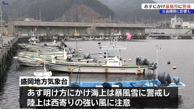 盛岡地方気象台は沿岸に暴風雪警報を発表し、18日の明け方にかけて警戒を呼びかけています。