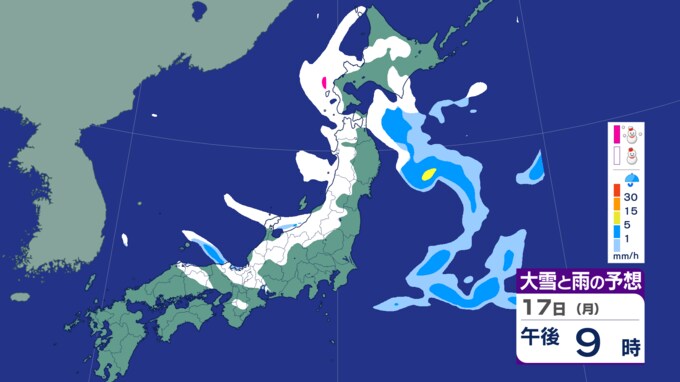 【大雪情報】“強烈な寒波”再来19日にかけて太平洋側の平地でも積雪か…18日午後6時までの24時間予想降雪…東北70㎝、関甲信50センチ、北陸70㎝、東海50㎝など(気象庁17日午後4時35分発表) 北海道放送 2025年2月17日(月) 17:37 国内 《大雪と雨のシミュレーション(20日午後6時まで)》