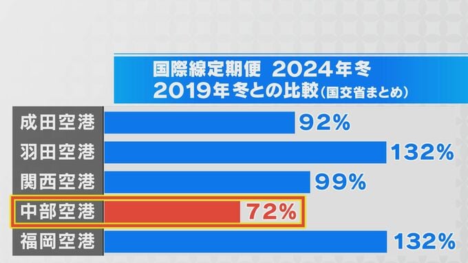 ただ、成田や関空は9割以上の回復、羽田・福岡は2019年を30%以上上回っている状況で、国内の他の国際空港に大きく差をつけられています。