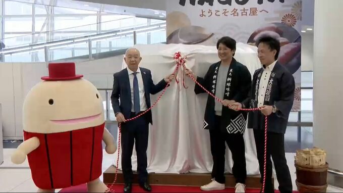 17日朝、中部空港に新たに展示されたのは「みそおけ」。中部の食文化をPRする取り組みだとか。