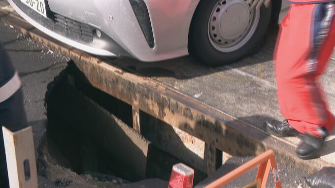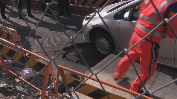 2月6日、名古屋市緑区神沢の市道で縦2.5メートル、横1.5メートル、深さ1メートルの穴が空く陥没が起き、乗用車の前輪がはまって動けなくなりました。