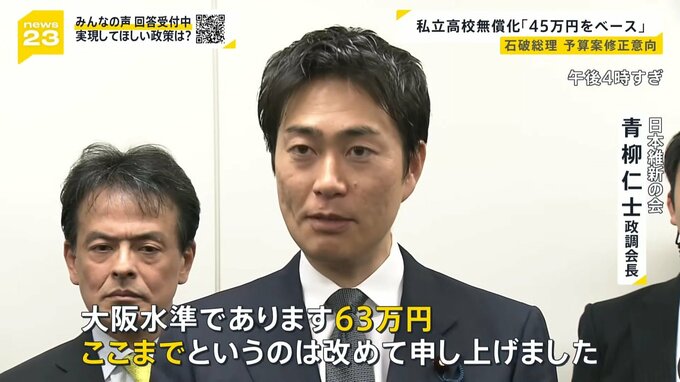 私立高校への支援額について、“全国平均45万7000円をベース”とする考えを表明しました。