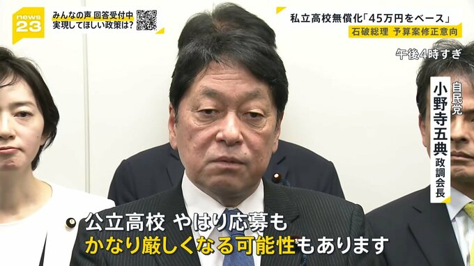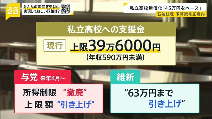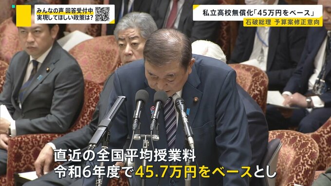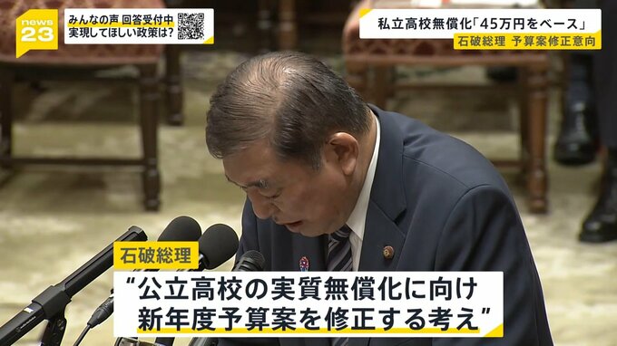 石破総理は、“公立高校の実質無償化に向け新年度予算案を修正する考え”を示しました。